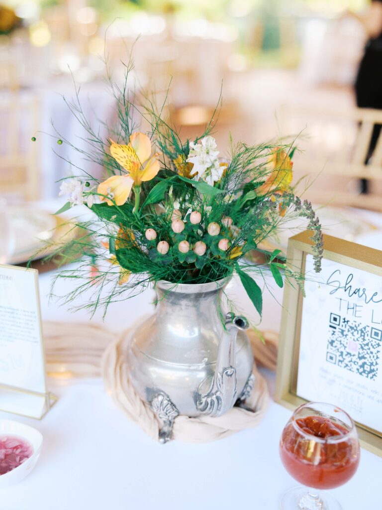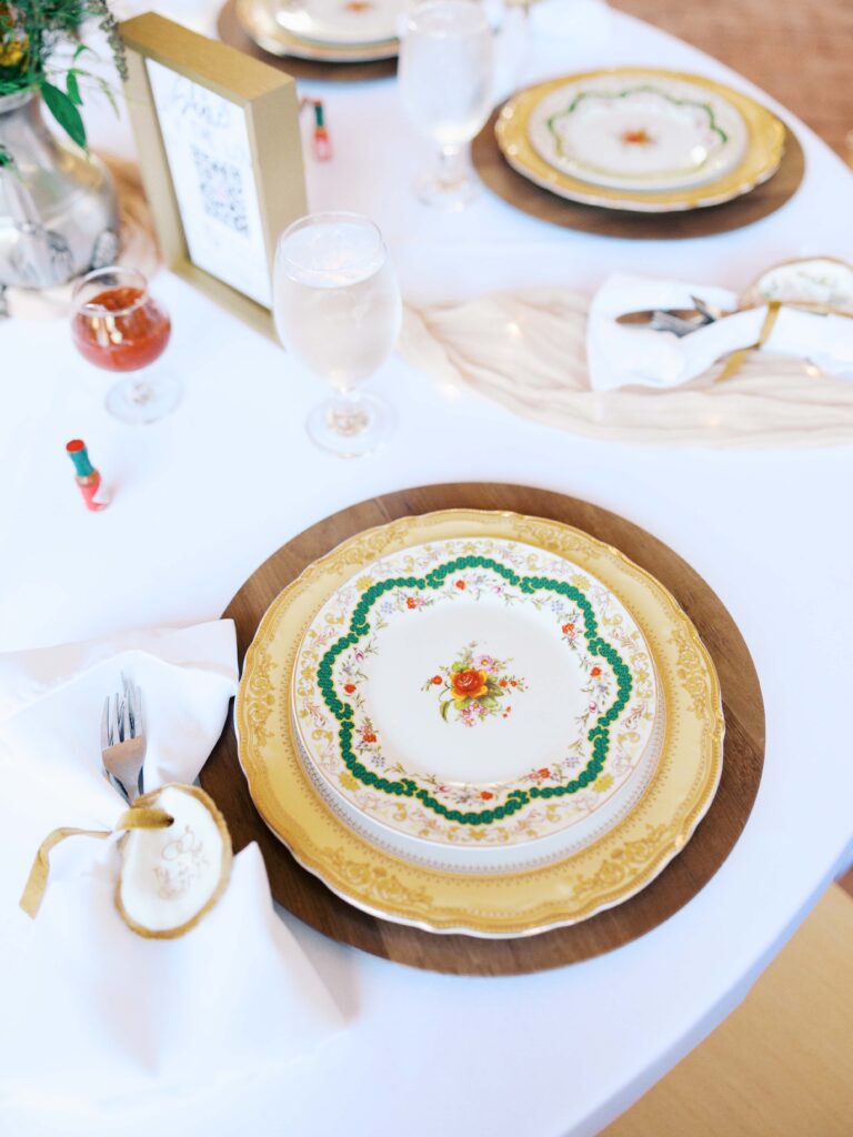 Guests were welcomed to beautifully set tables with vintage dinnerware and custom painted shells to take home. Every detail was thought about! Friends and family gathered to toast Zoe & Ty before they said “I do” the next day.