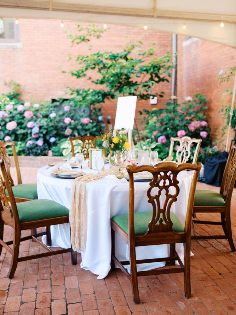 Zoe & Ty’s rehearsal dinner was held at the historic Summit Street Inn in Winston Salem, North Carolina. It was the perfect start to their wedding weekend! The tented party sat beside the brick estate which was surrounded by beautiful summer florals and a summer sunset.