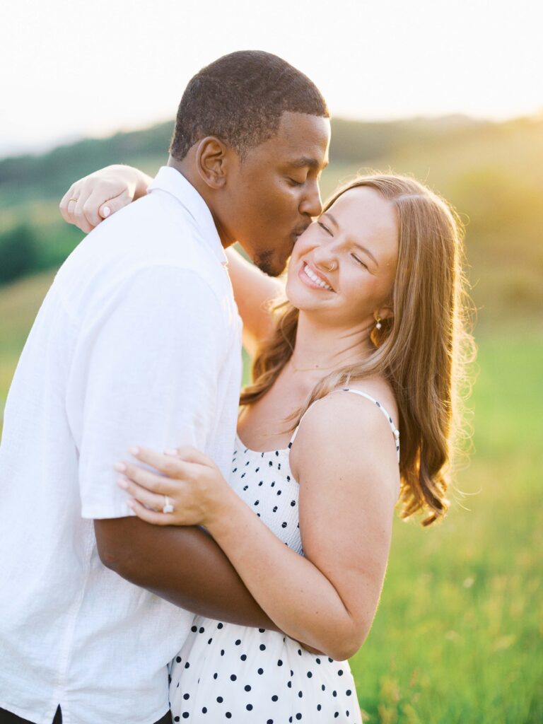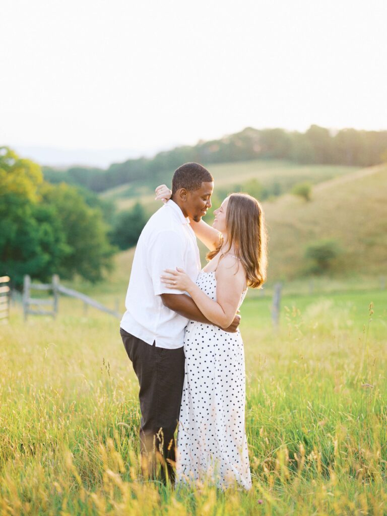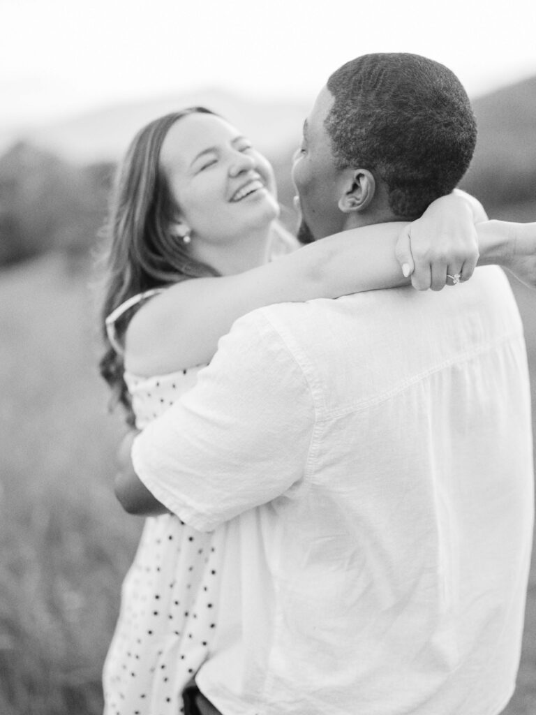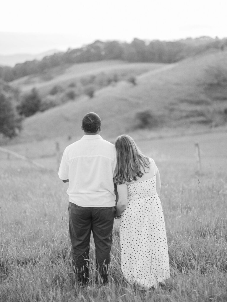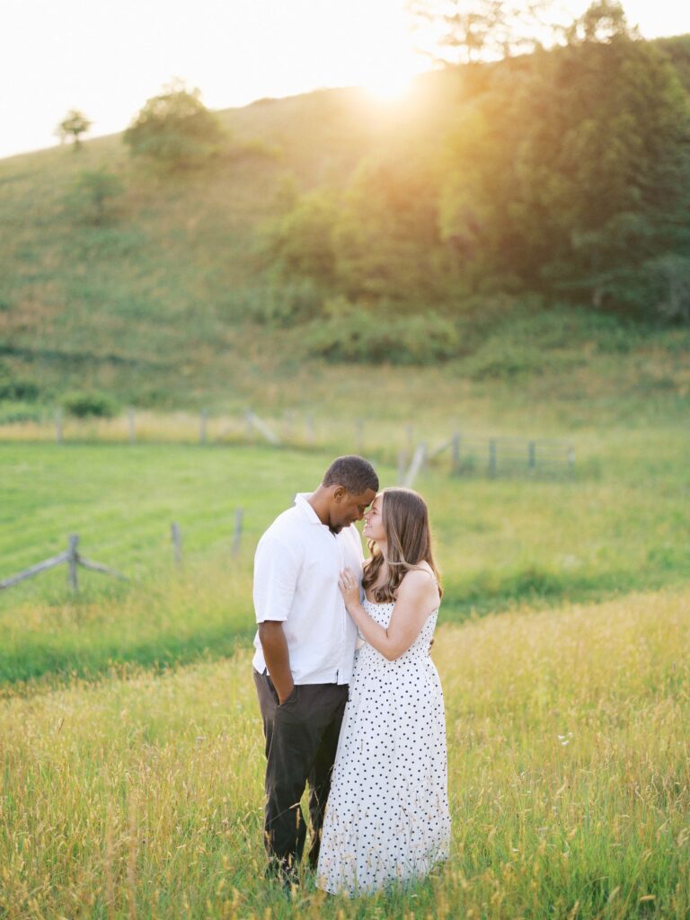 Emily & Dequan chose to do their engagement session along the Blue Ridge Parkway, a place that means a lot to Emily because she graduated from Appalachian State. We planned for a June evening and the forecast looked perfect, but as we both drove into Boone, the clouds rolled in. If you’ve spent time in the NC mountains, you know the weather changes so quickly!