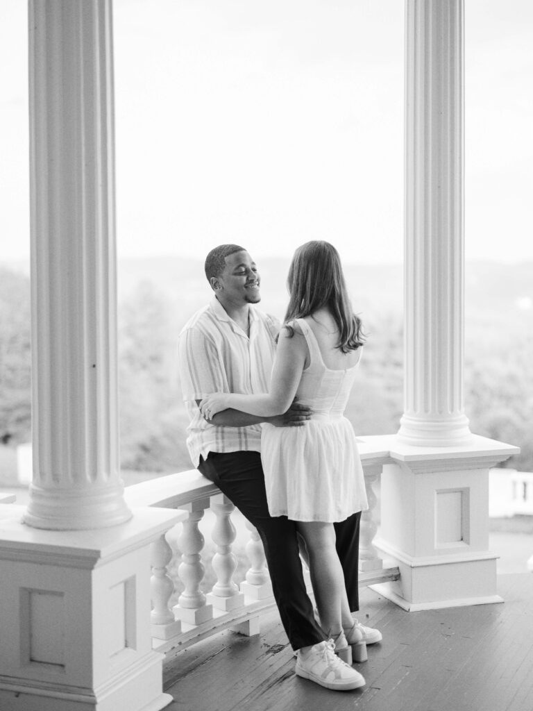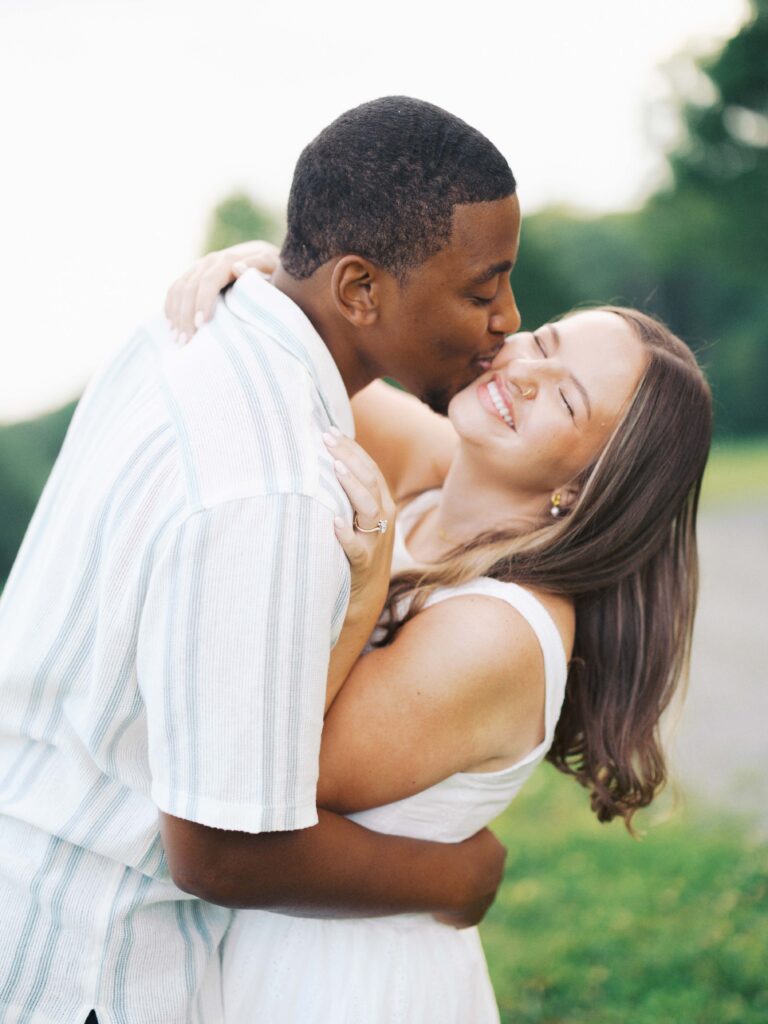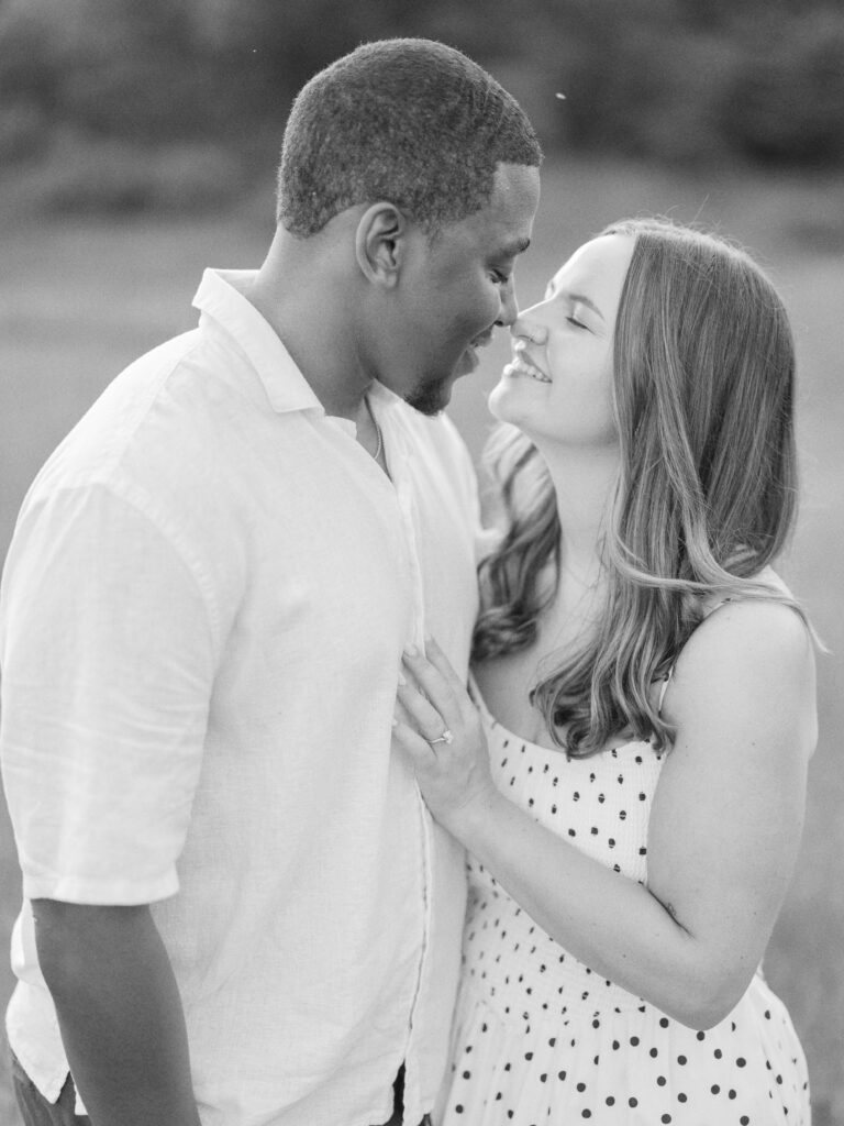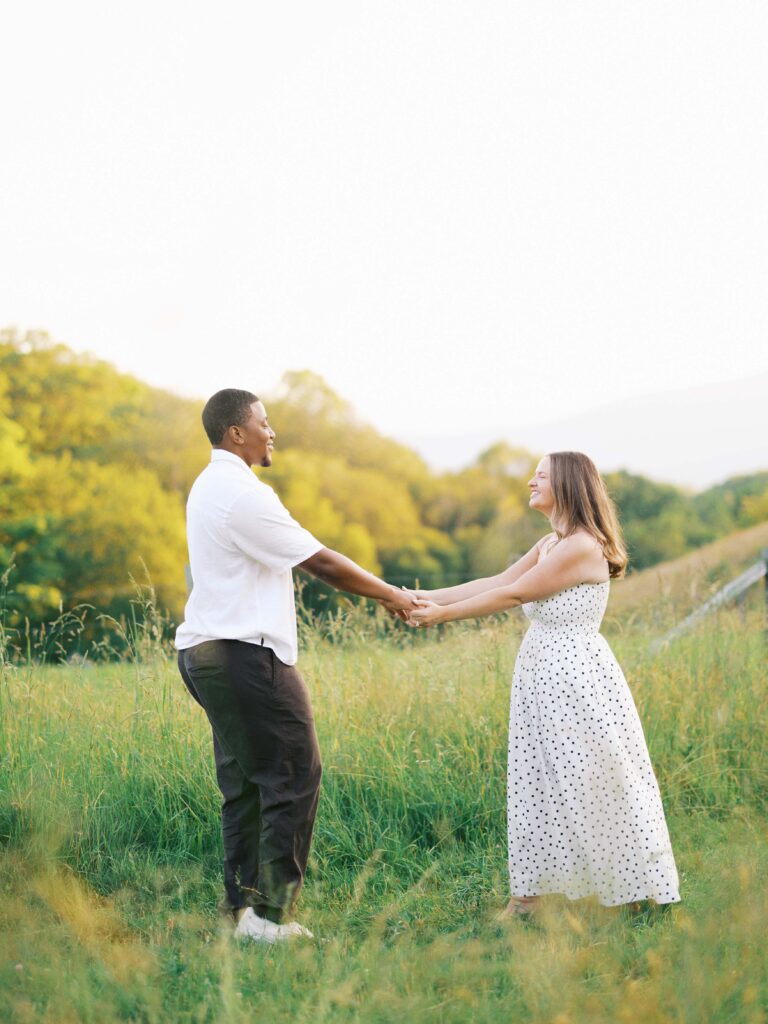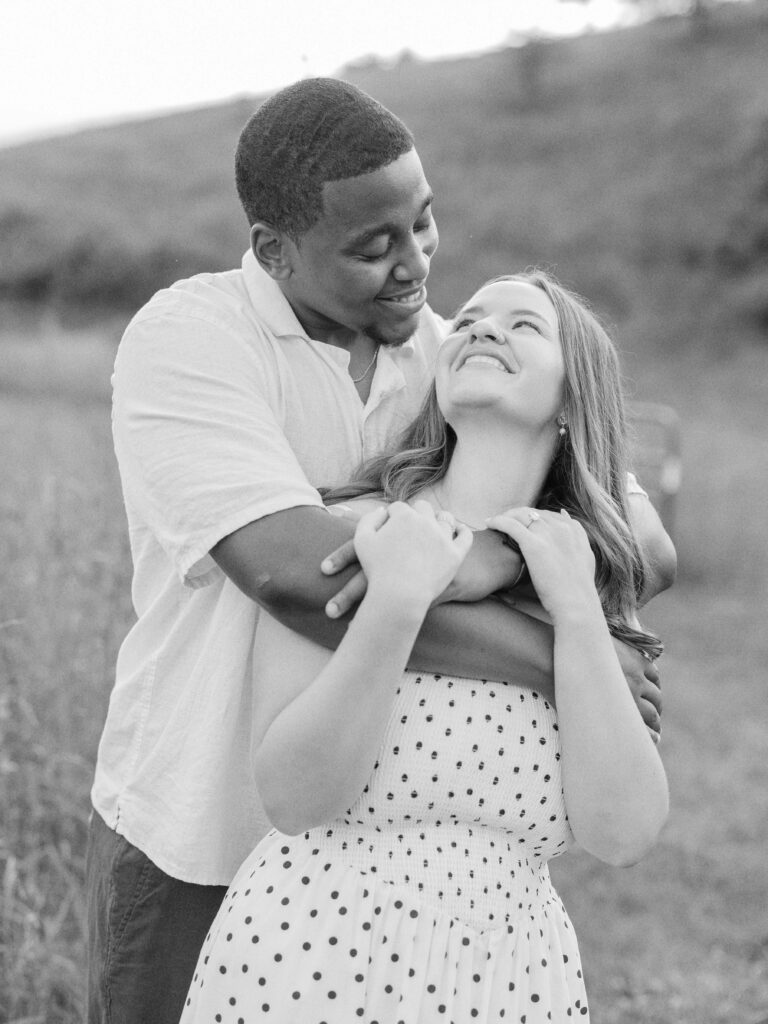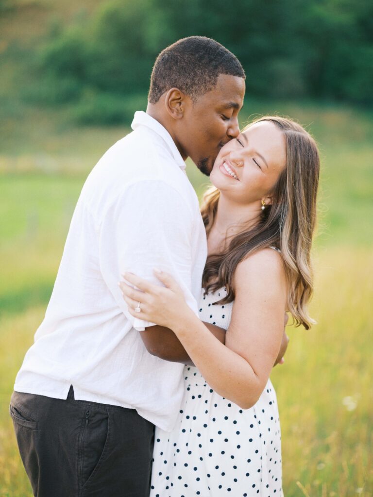 Emily & Dequan chose to do their engagement session along the Blue Ridge Parkway, a place that means a lot to Emily because she graduated from Appalachian State. We planned for a June evening and the forecast looked perfect, but as we both drove into Boone, the clouds rolled in. If you’ve spent time in the NC mountains, you know the weather changes so quickly!