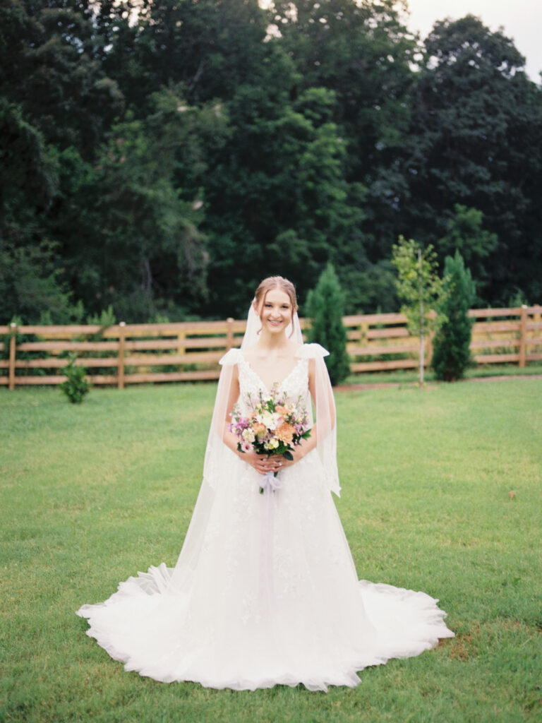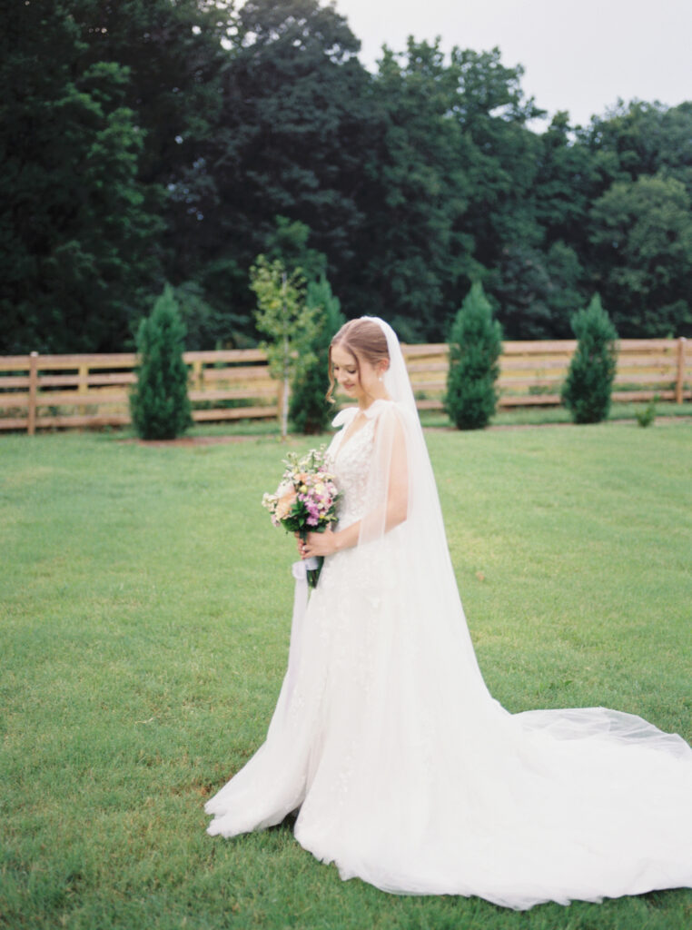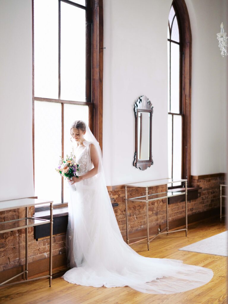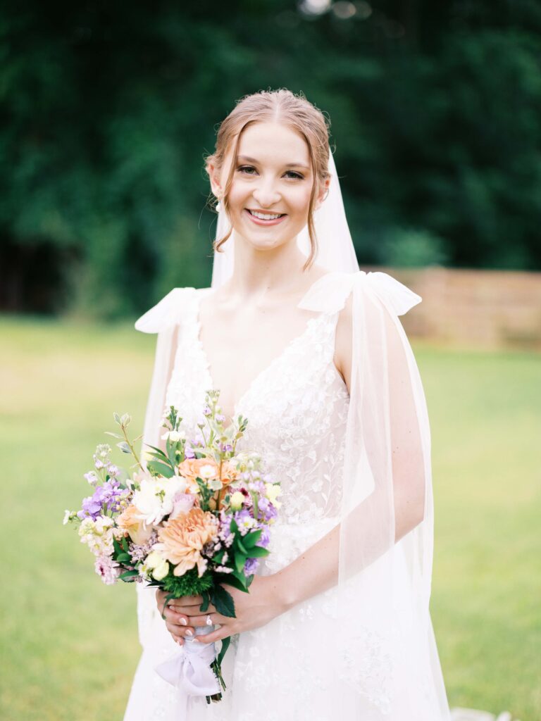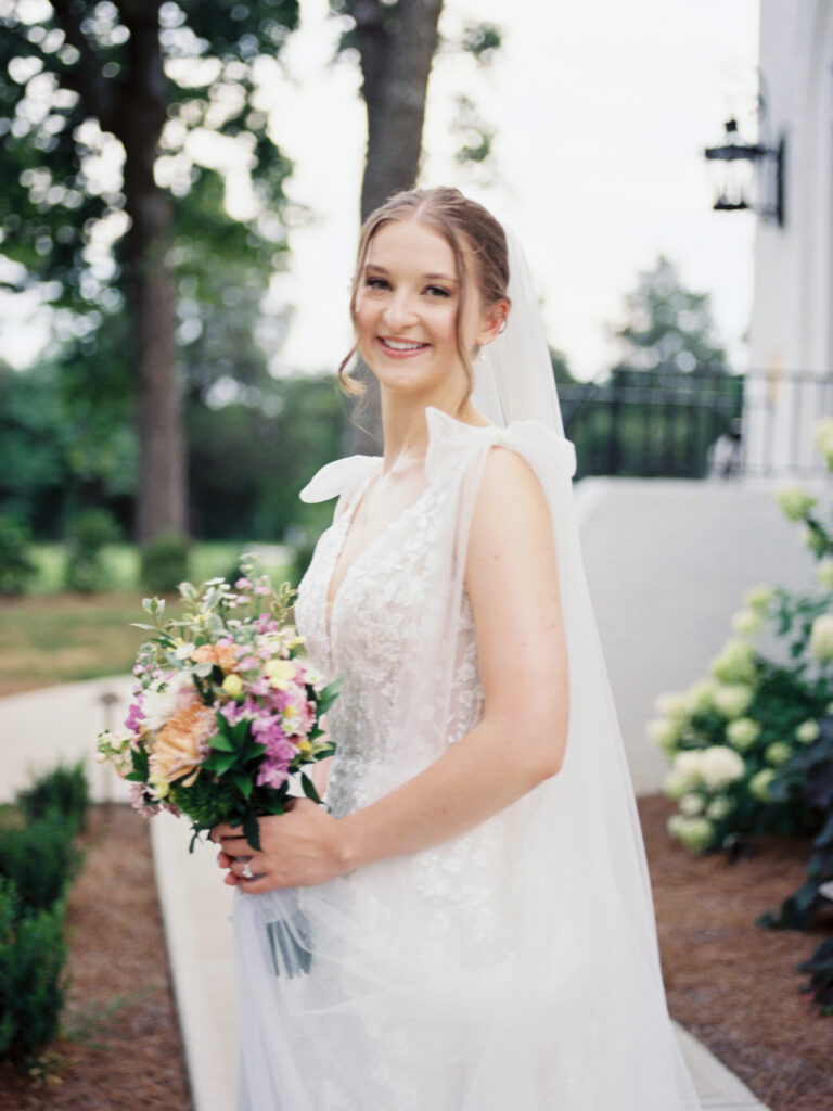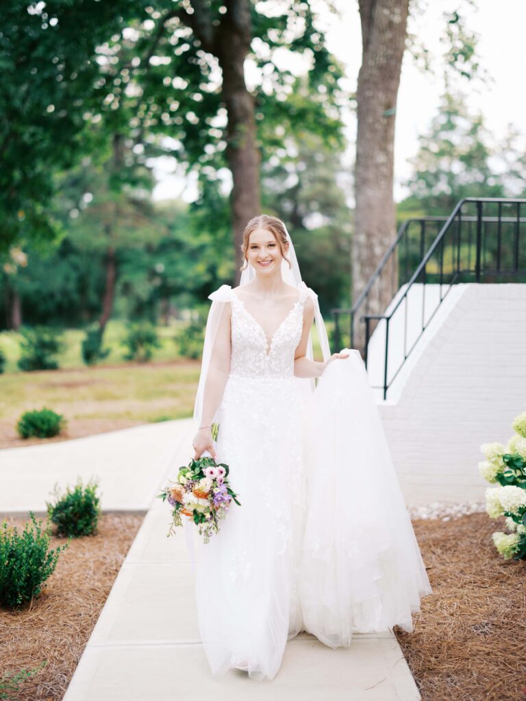 Elizabeth’s summer bridal portraits at Magnolia Hill Chapel, just outside of Winston Salem, were a dream! I’m so excited to share these because she is officially a married woman! Her stunning gown is from English’s Bridal, designed by Justin Alexander. I absolutely love her dress with those little cute bows (they can even be removed, so they don’t get in the way of dancing the night away).