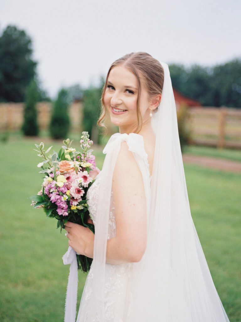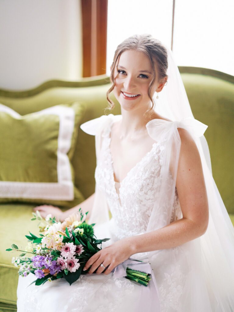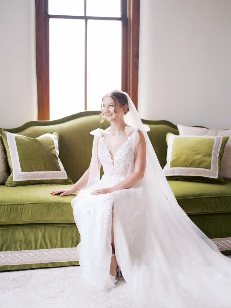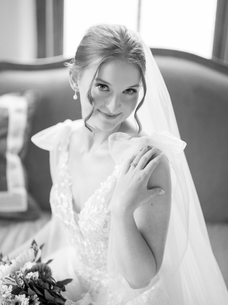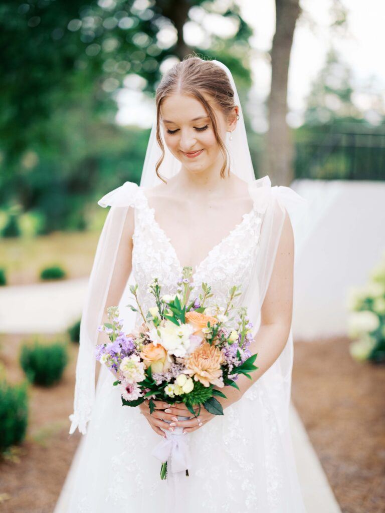 Elizabeth’s summer bridal portraits at Magnolia Hill Chapel, just outside of Winston Salem, were a dream! I’m so excited to share these because she is officially a married woman! Her stunning gown is from English’s Bridal, designed by Justin Alexander. I absolutely love her dress with those little cute bows (they can even be removed, so they don’t get in the way of dancing the night away).