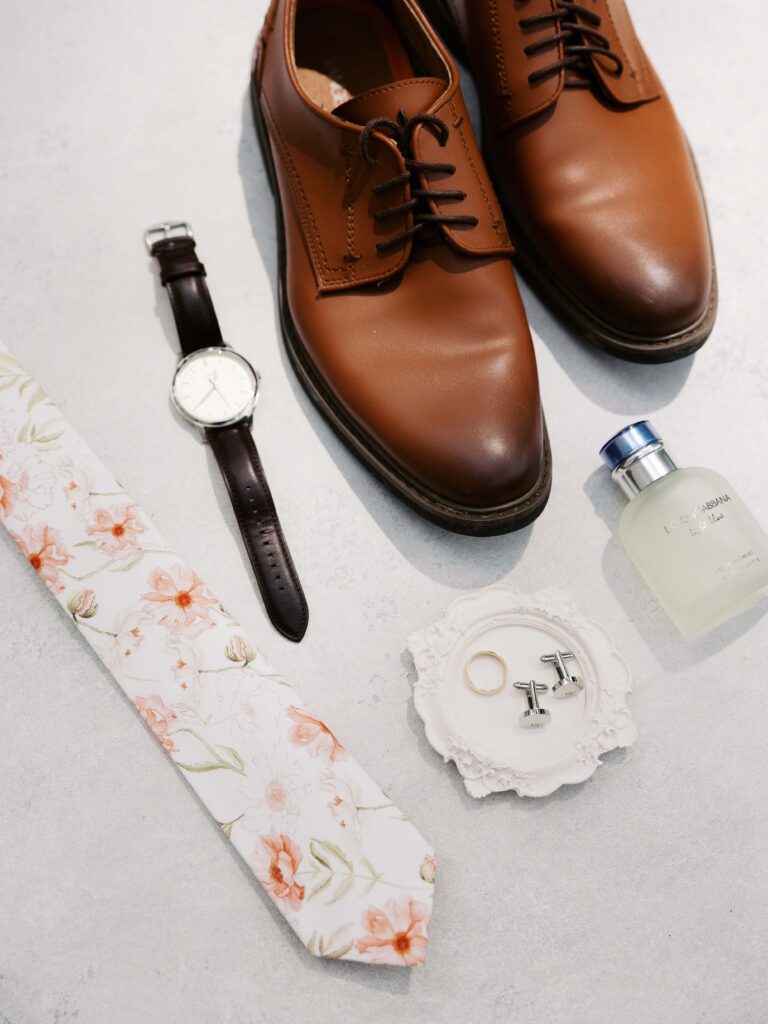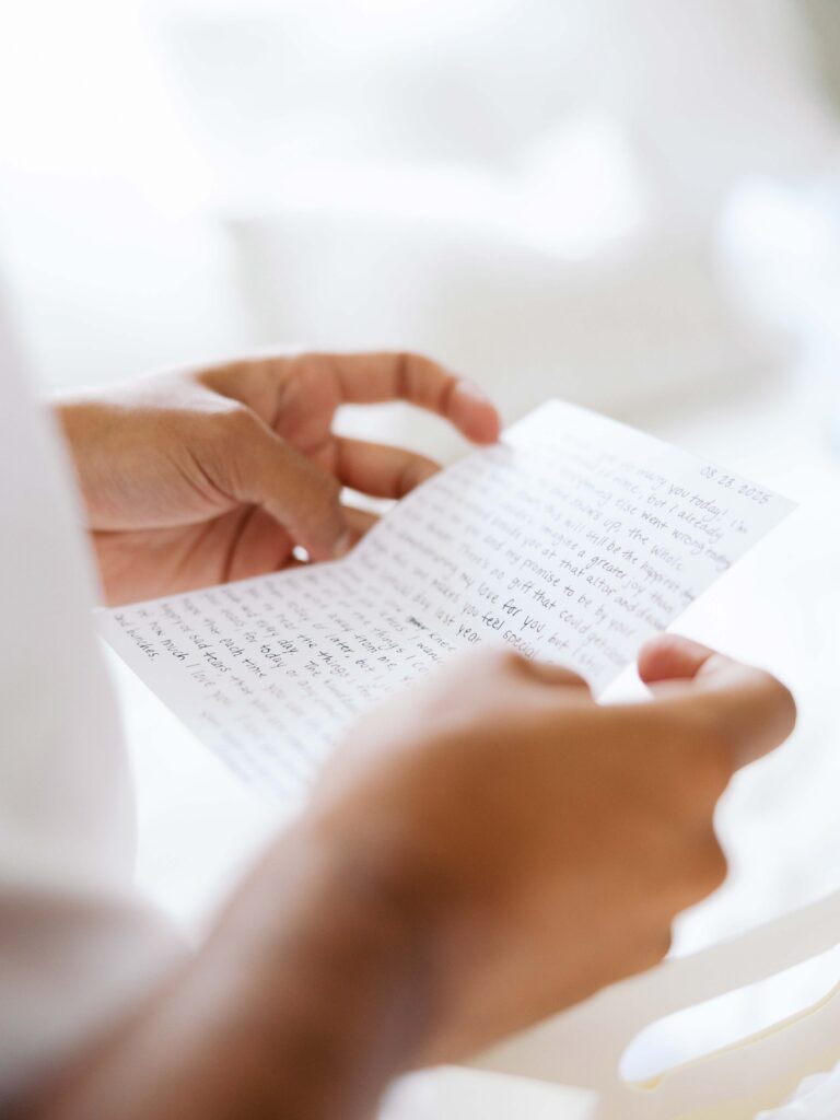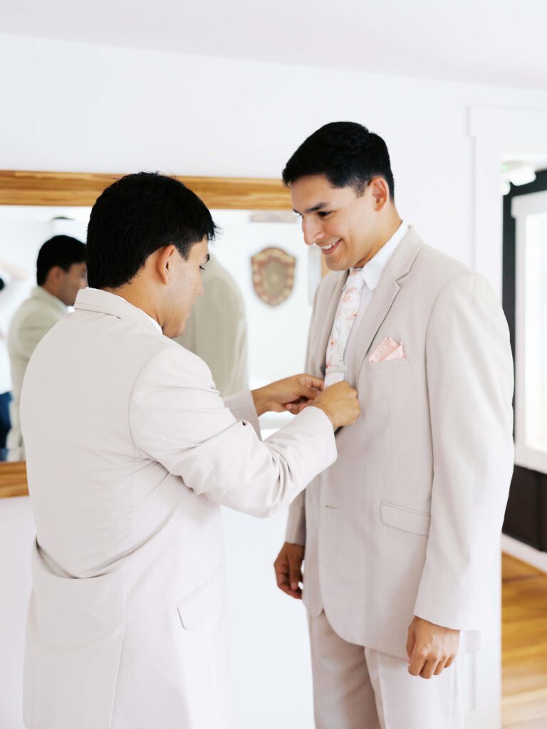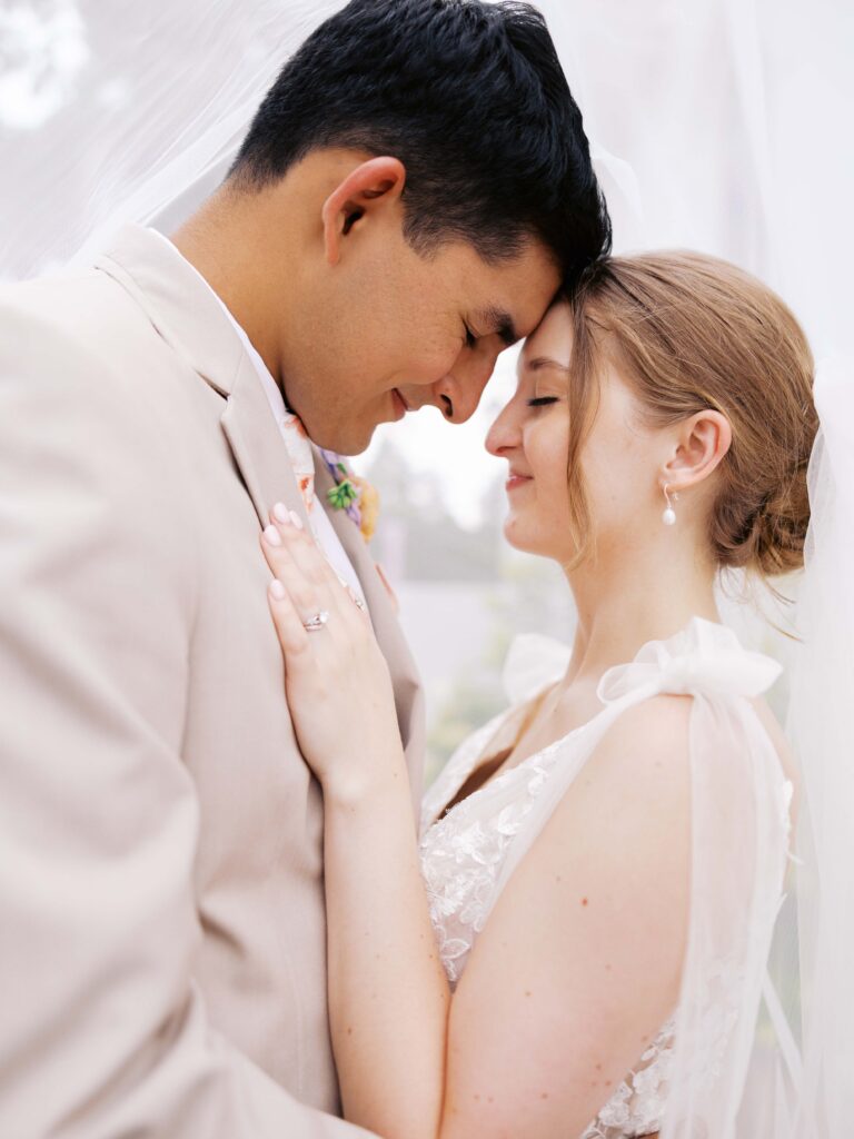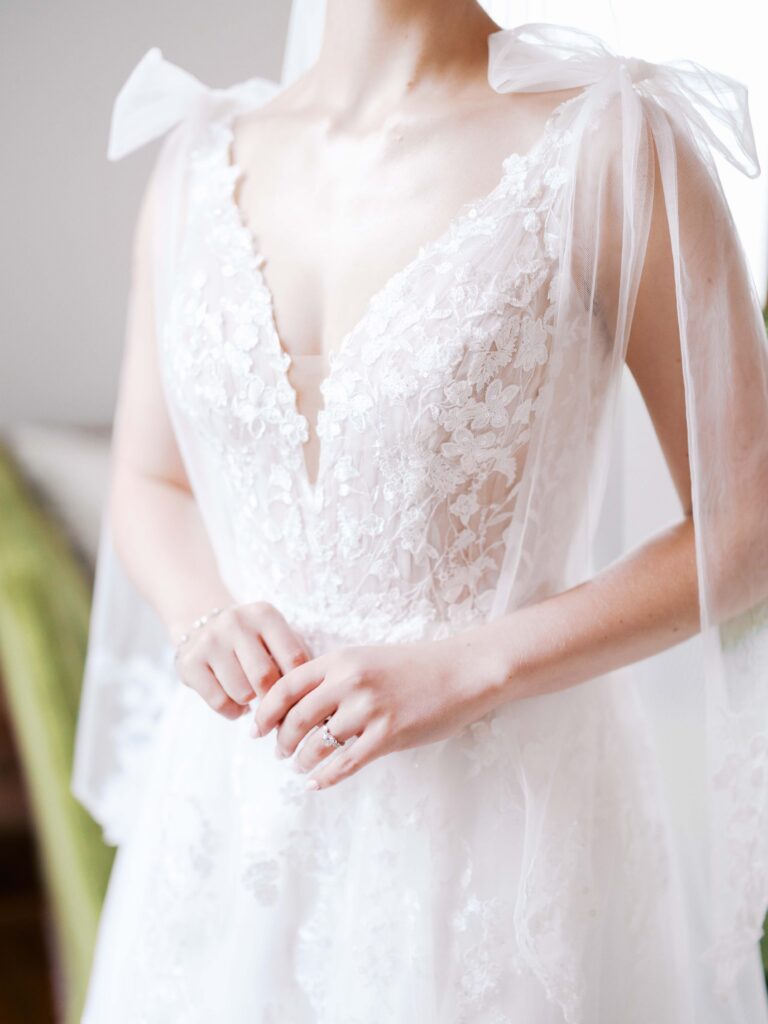 Elizabeth shared with me how excited she was about. her detail photos, and her invitation suite delivered. The soft pastel color palette was stunning for this North Carolina summer wedding. Gonzalo gifted Elizabeth a pair of diamond earrings the morning of their wedding, which she paired with earrings that had been passed down through the family.