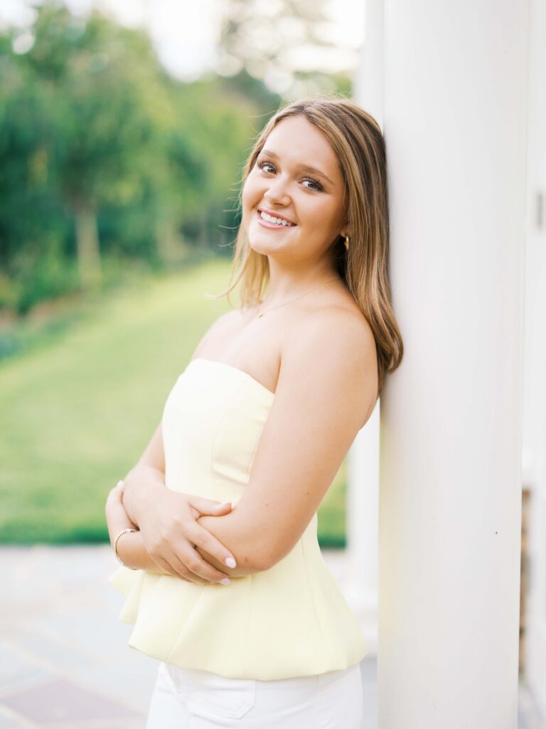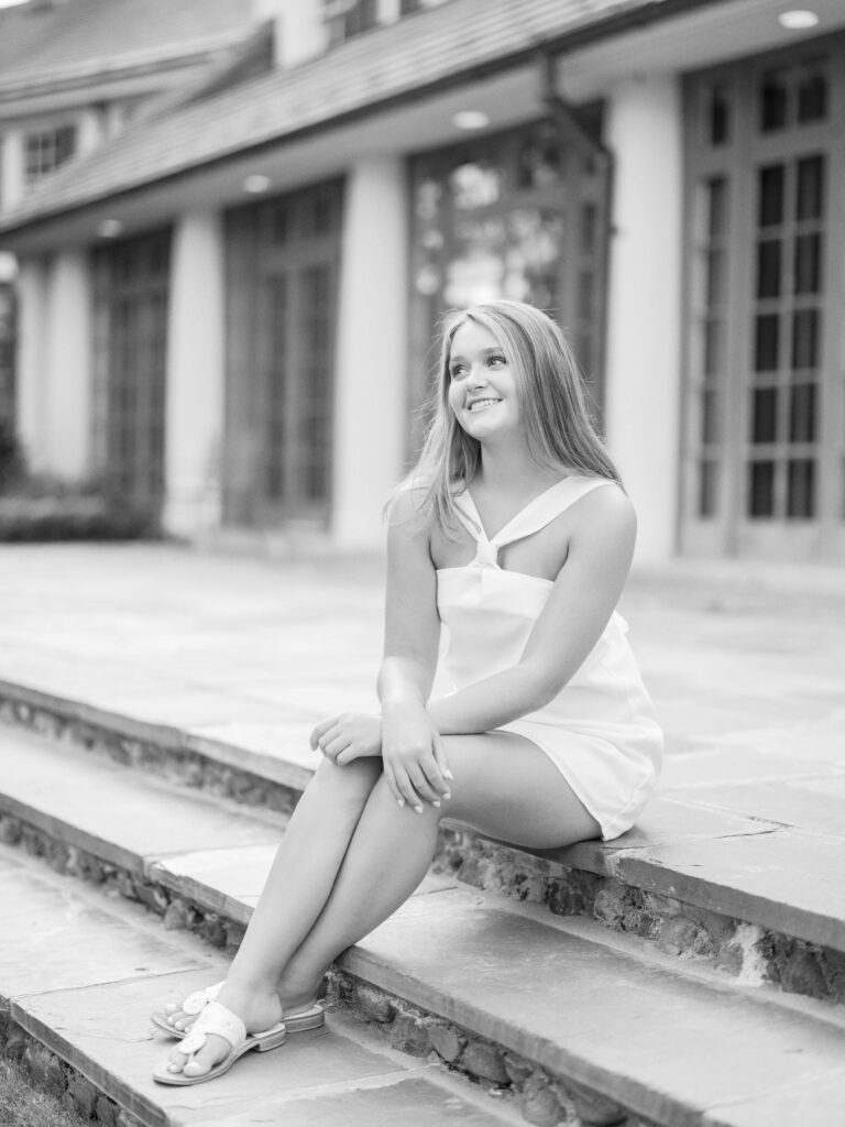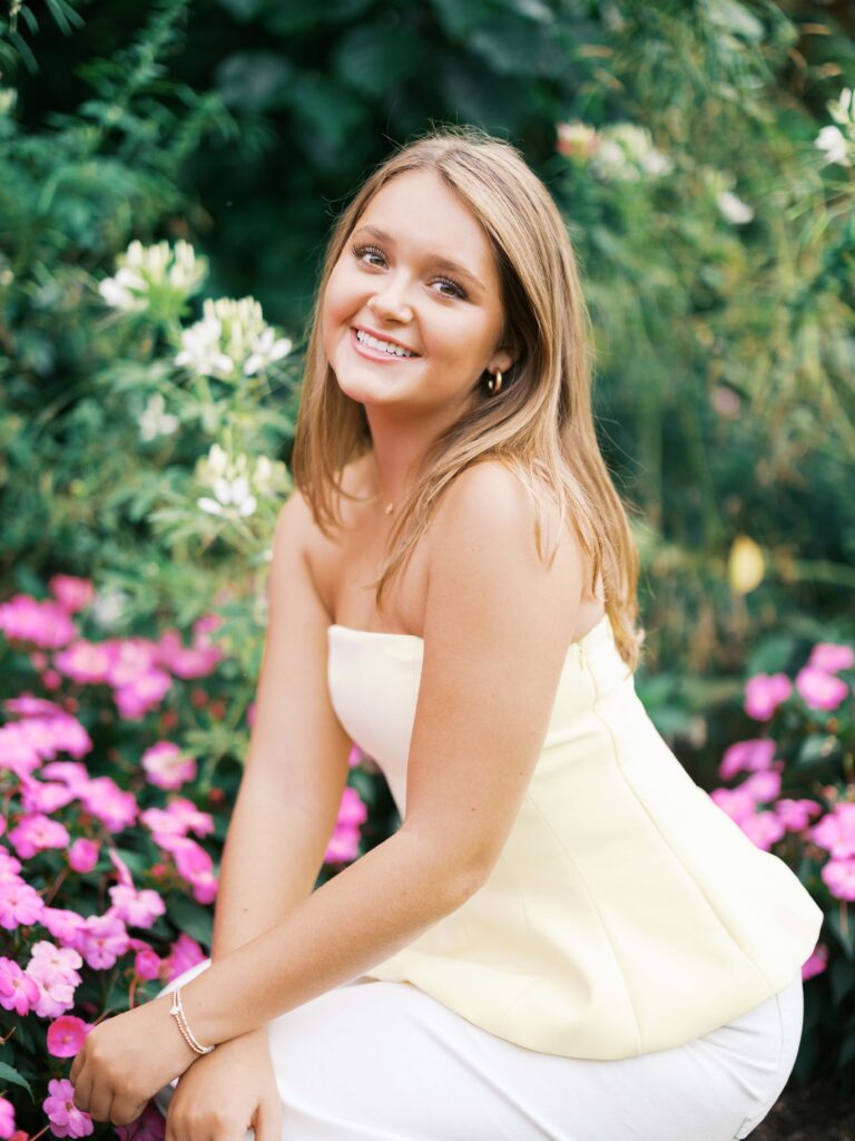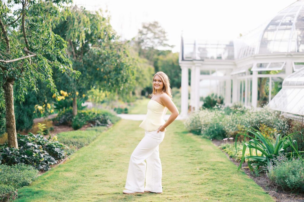 Lauren chose my Full Senior Experience, so she wore four adorable outfits during her session. We bounced around to all the beautiful spots in front of the Reynolda House and then down in the formal Gardens. My favorite outfit was Lauren’s jeans and soft yellow top. All of her outfits matched the natural floral and architectural colors at Reynolda!