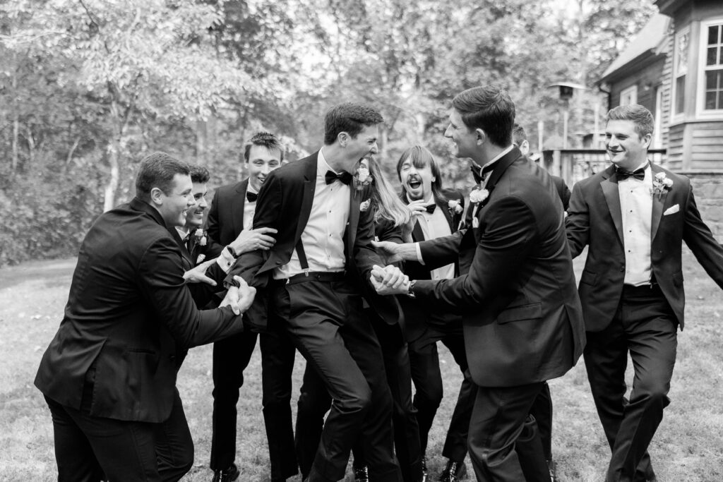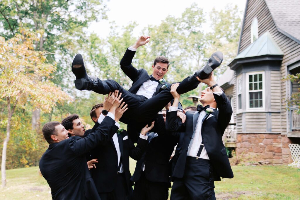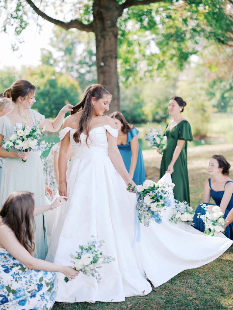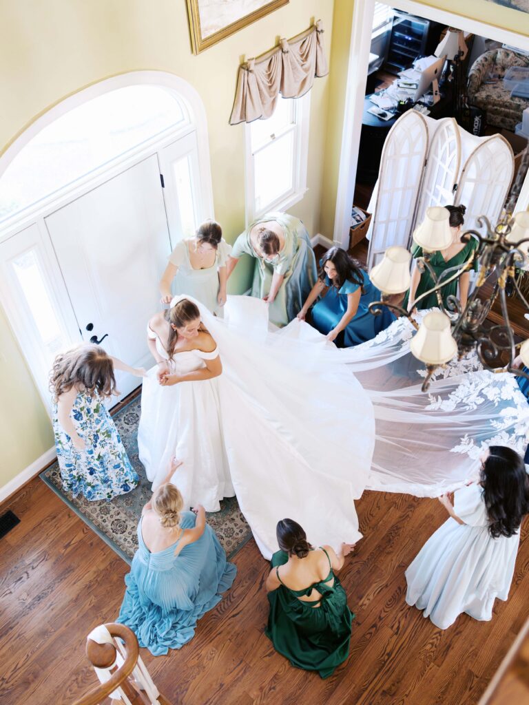 One of my favorite aspects of Sofie & Liam’s wedding day was the inclusion of her childhood home. Sofie and her bridesmaids got ready at her home while the tent for their reception was being set up on the lawn. There were many special moments that morning in her childhood home, having her hair and makeup done in her bedroom, a first look with her bridesmaids by the stairs, and a first look with her dad in the living room. Also, Liam and the guys got ready at Sofie’s brother’s home!